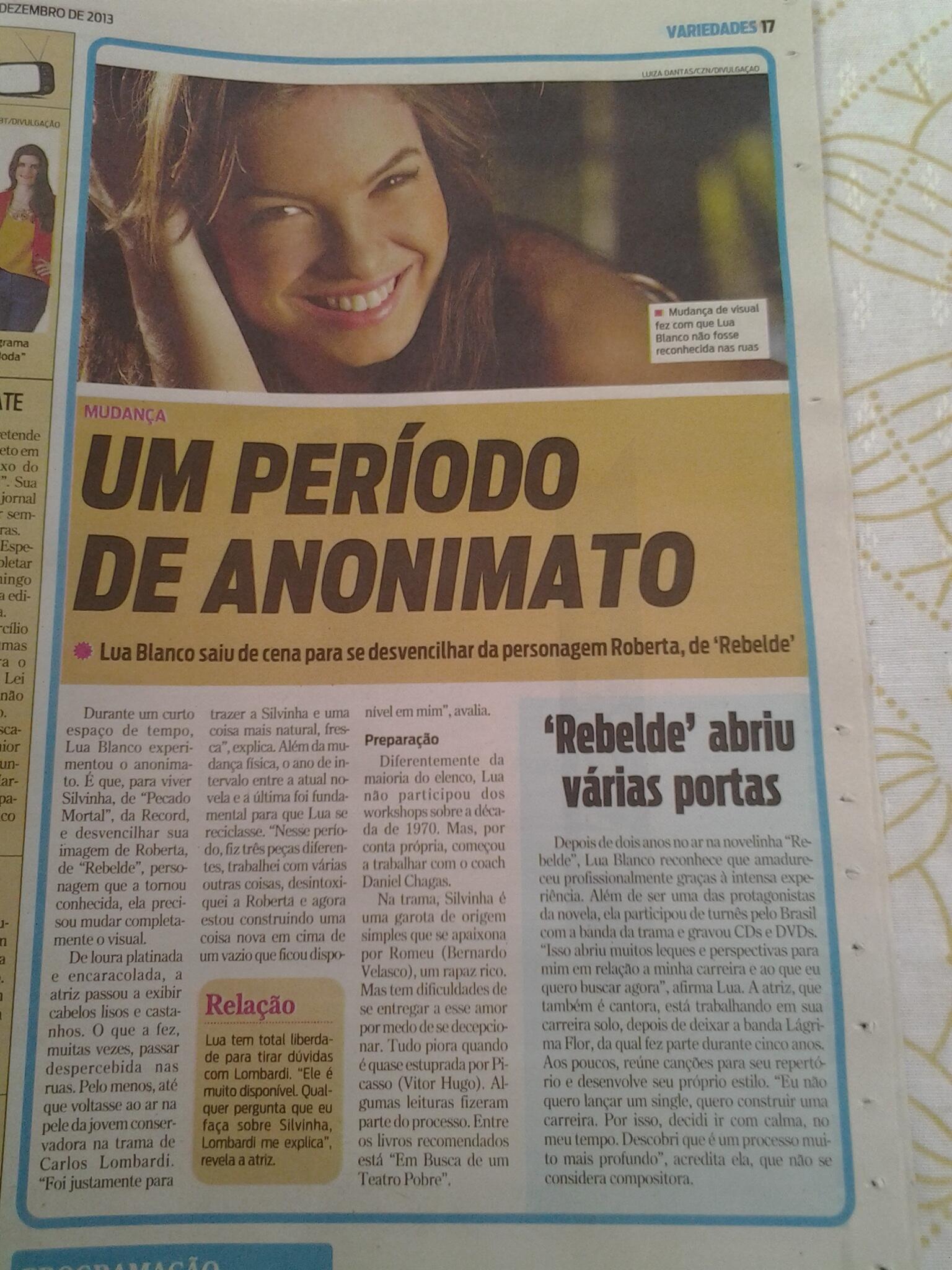 Com direito a capa de jornal e entrevista, Lua Blanco mostra-se muito disposta à mudar radicalmente seu visual de acordo com cada personagem vivenciando pela mesma. Interpretando, atualmente, Silvia de Almeida, popularmente conhecida como Silvinha, a atriz escureceu as madeixas e apostou no cabelo mais curto, dando espaço ao Mega Hair.